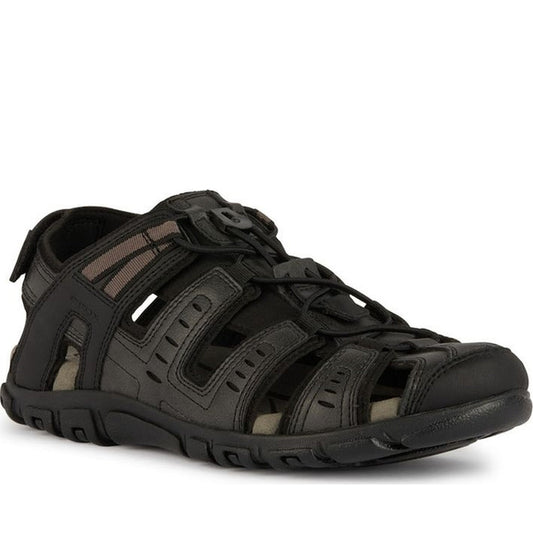 black leather casual open sandals
