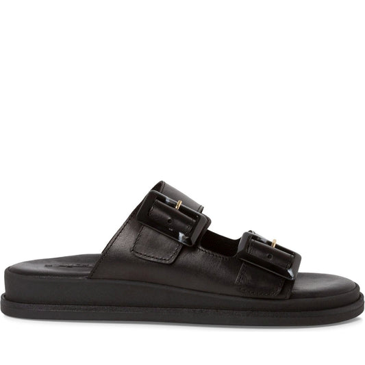 black leather casual open slippers